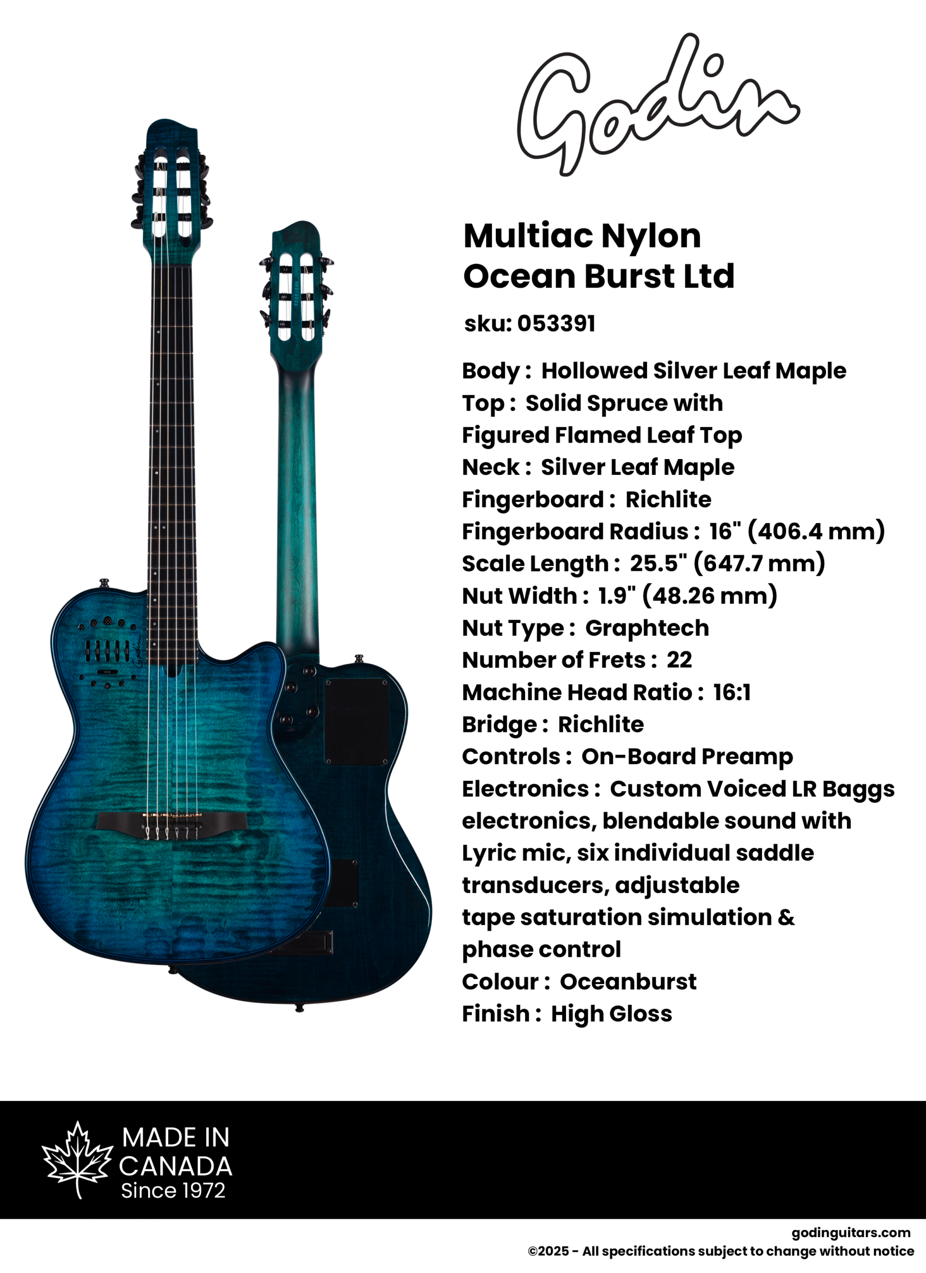 Nous sommes ravis de vous présenter deux nouveaux modèles en édition limitée dans la série Multiac : Dégradé Opale et Dégradé Océan, fabriquées au Canada. Conçues en collaboration avec le groupe Opal Ocean, ces guitares possèdent une table en cèdre massif et un placage en érable figuré de qualité supérieure, avec une finition éblouissante inspirée des océans et des profondeurs marines. Le modèle Dégradé Opale est doté d'une touche en érable, tetis que le Dégradé Océan est équipé d'une touche en Richlite, offrant ainsi aux musiciens un choix de tonalité et de confort. Ces deux modèles allient un savoir-faire exceptionnel à une esthétique unique, faisant d’eux un ajout remarquable à toute collection.