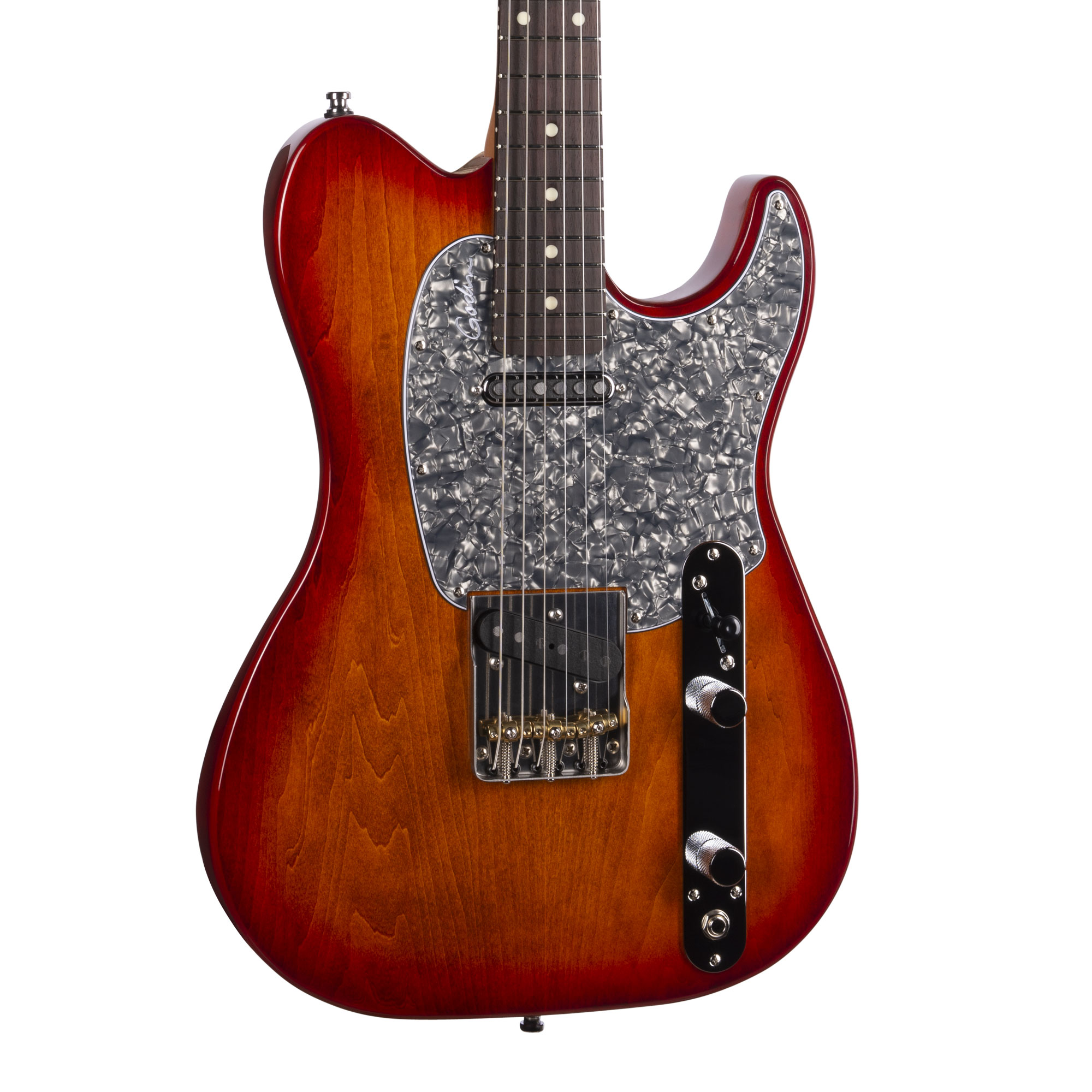 La Godin Stadium Pro est l’aboutissement de plusieurs mois de recherche dans le but d’offrir la guitare idéale qui respecterait les sonorités antique tout en bénéficiant de caractéristiques techniques contemporaines. Nous avons optés pour une paire de micros haut de gamme : un TV Jones Starwood au manche et un Lollar T Special au chevalet. Le TV Jones Starwood est très musical, avec une large dynamique, un haut niveau de sortie mais conserve le son typique des guitares antique. Le Lollar T Special est puissant, avec des médiums chaleureux et des fréquences aiguës moins criardes. Cette association est polyvalente, moderne, complètement silencieuse en position milieu et sera autant à l’aise en rock qu’en country ! Ces micros sont logiquement pilotés par un sélecteur trois postions, un contrôle général de volume et un de tonalité. Fabriquée au Canada, la Stadium Pro est dotée d’un fini brillant spécifique à Godin : mince, flexible et beaucoup plus facile d’entretien. L’instrument respire et raisonne naturellement. Le traditionnel chevalet Godin Custom-T, ajustable pour une intonation et une justesse de jeu maximale, complète cette guitare. Disponible en plusieurs coloris et de choix de touche, la Godin Stadium Pro est déjà une valeur sure qui plaira à tous les musiciens à la recherche du juste milieu entre modernisme et tradition. La Stadium Pro Ltée Pacifik bleu MN est limitée pour l’année 2023 seulement, et chacune de ces guitare sera signée à l’arrière de la tête par Simon Godin !