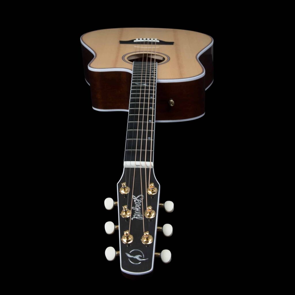 The Seagull Artist line is renewed with the addition of the Artist Mosaic CW HG EQ. Offering a complete array of features, this guitar checks all the boxes for the pro musician with a shimmery natural finish, a full bodied dreadnought high-gloss mahogany body shape for exceptional tone and projection, an ample cutaway for easy upper fret access, a highly vibrant and resonant solid spruce top, new Seagull Artist inlays, discretely placed LR Baggs Anthem system, and utmost attention to detail and build quality. The Seagull Artist Mosaic CW HG EQ is a true collection piece.
