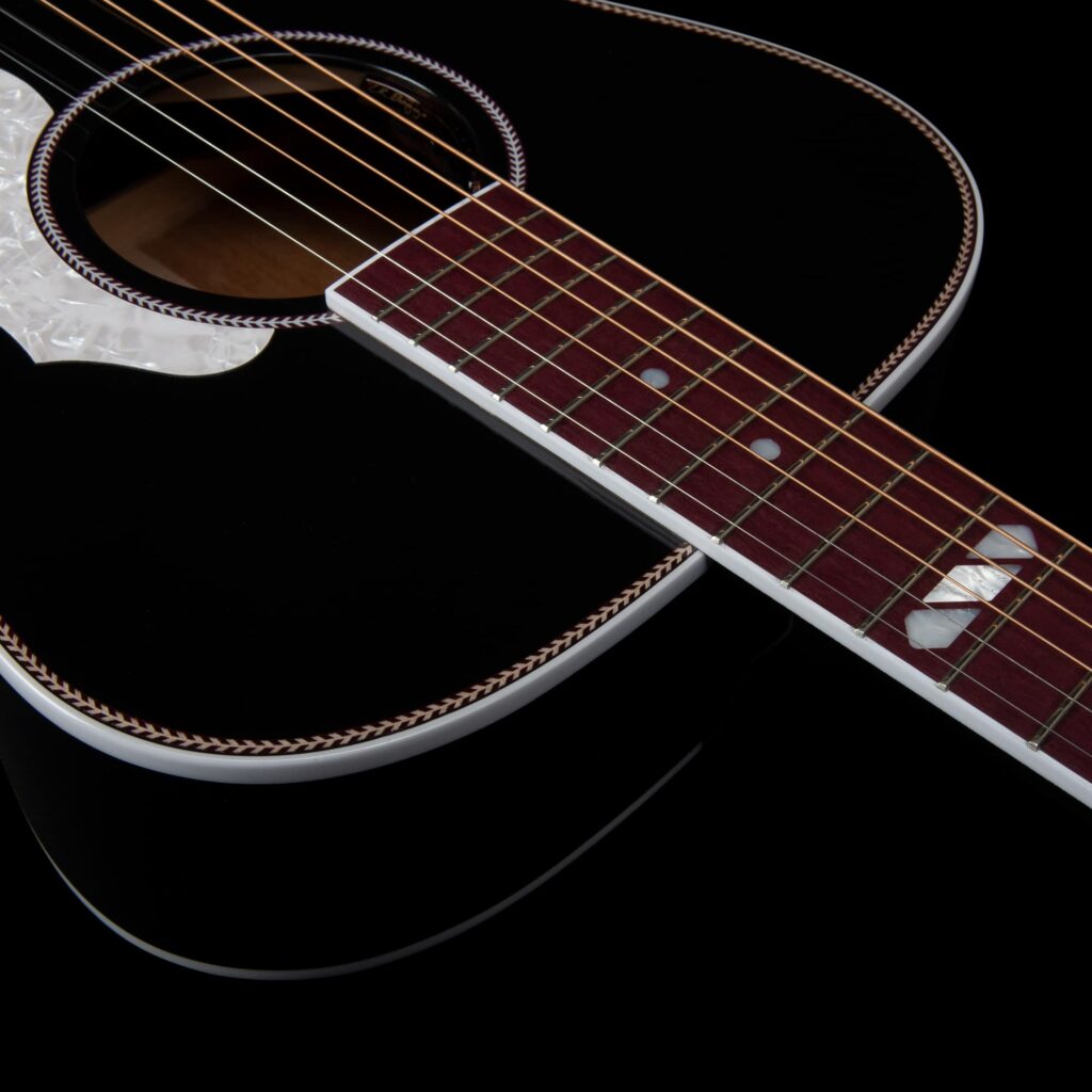 The Seagull Artist Limited Tuxedo Black EQ is truly the dark horse of the Artist line. With its intense all-around Tuxedo Black high-gloss finish and contrasting white trim, this guitar has a definite wild side waiting to be tamed. The slim 1.72″ nut makes for an easy-to-play neck profile, while the guitar’s resonant structural design helps produce pristine and defined tones. This Limited Edition model also includes a discrete LR Baggs on-board preamp system, a Richlite fretboard with custom three-part inlay at the 12th fret. Reveal your wild side with the Seagull Artist Limited Tuxedo Black EQ.