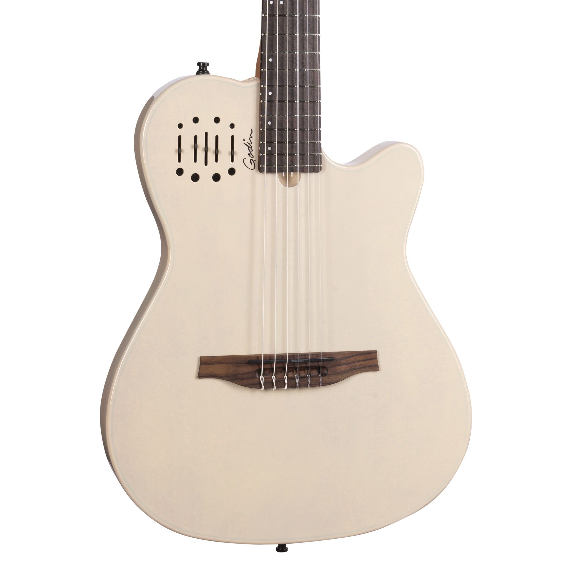 - Custom Godin Dual Source System, 2 body sensors, Undersaddle bridge