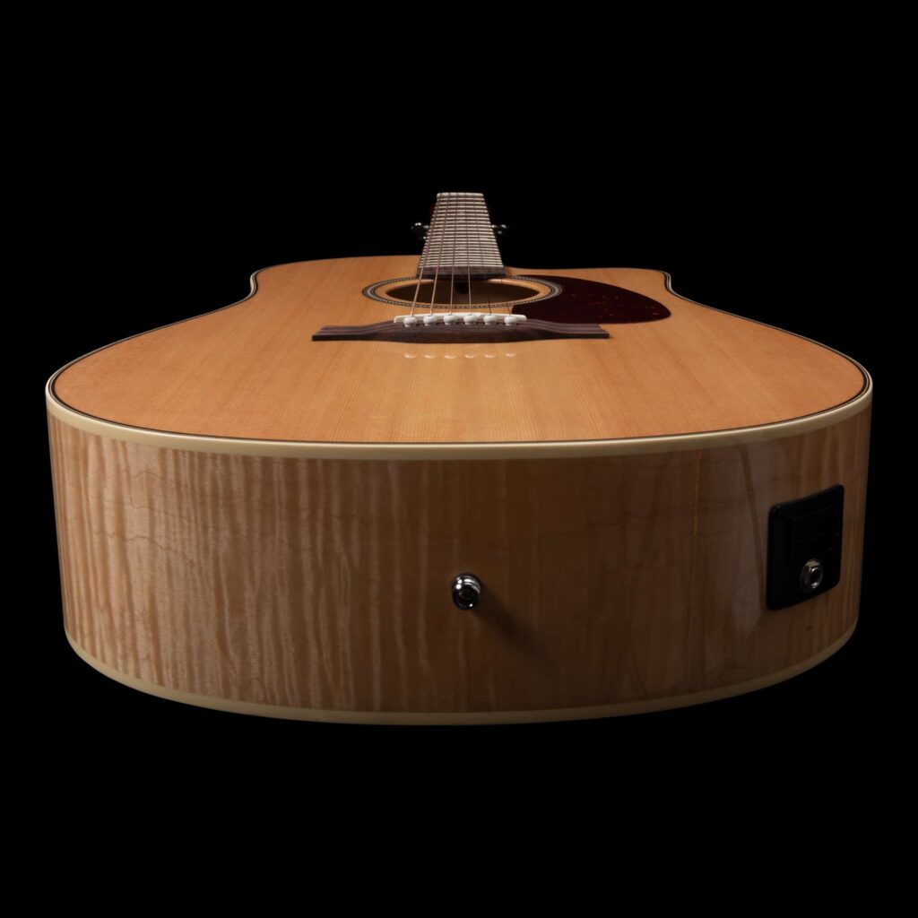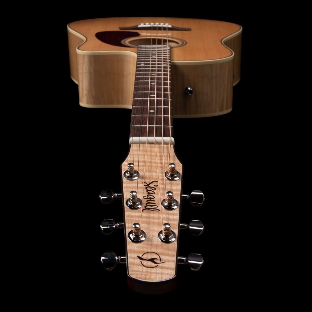 The Seagull Performer CW Flame Maple, as with all Performer models, features beautiful Flame Maple back & sides, a Select Pressure Tested solid spruce top, Custom Polished High-Gloss finish, and onboard electronics with built-in tuner. The electronics on the Seagull Performer series guitars include a built-in tuner and are a standard feature on these models. This combined with a cutaway and Seagull embroidered gig-bag makes for a great package for the gigging musician.