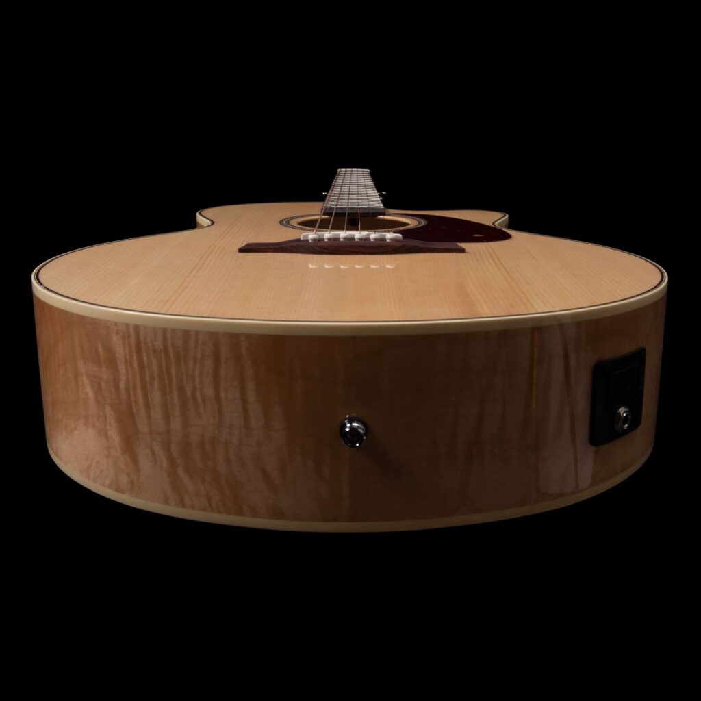 The Seagull Performer CW Mini-Jumbo Flame Maple, as with all Performer models, features beautiful Flame Maple back & sides, a Select Pressure Tested solid spruce top, Custom Polished High-Gloss finish, and onboard electronics with built-in tuner. The Mini-Jumbo provides an excellent full-range of tone including a lively mid-range due to the combination of a larger lower bout, a more narrow waist and slightly thinner body depth. The electronics on the Seagull Performer series guitars include a built-in tuner and are a standard feature on these models. This combined with a cutaway and Seagull embroidered gig-bag makes for a great package for the gigging musician.